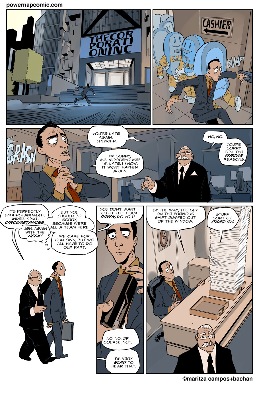 (maritza says) Welcome! This is Power Nap, our online graphic novel. It's a science fiction story heavily oriented towards action and humor. Remember! You can follow the updates using the rss, or follow me on Twitter. I always announce updates and news on twitter, and my username is @maritzac if you want to see the announcements as the comic updates. In addition, you're welcome to join the Power Nap fan page in Facebook |
