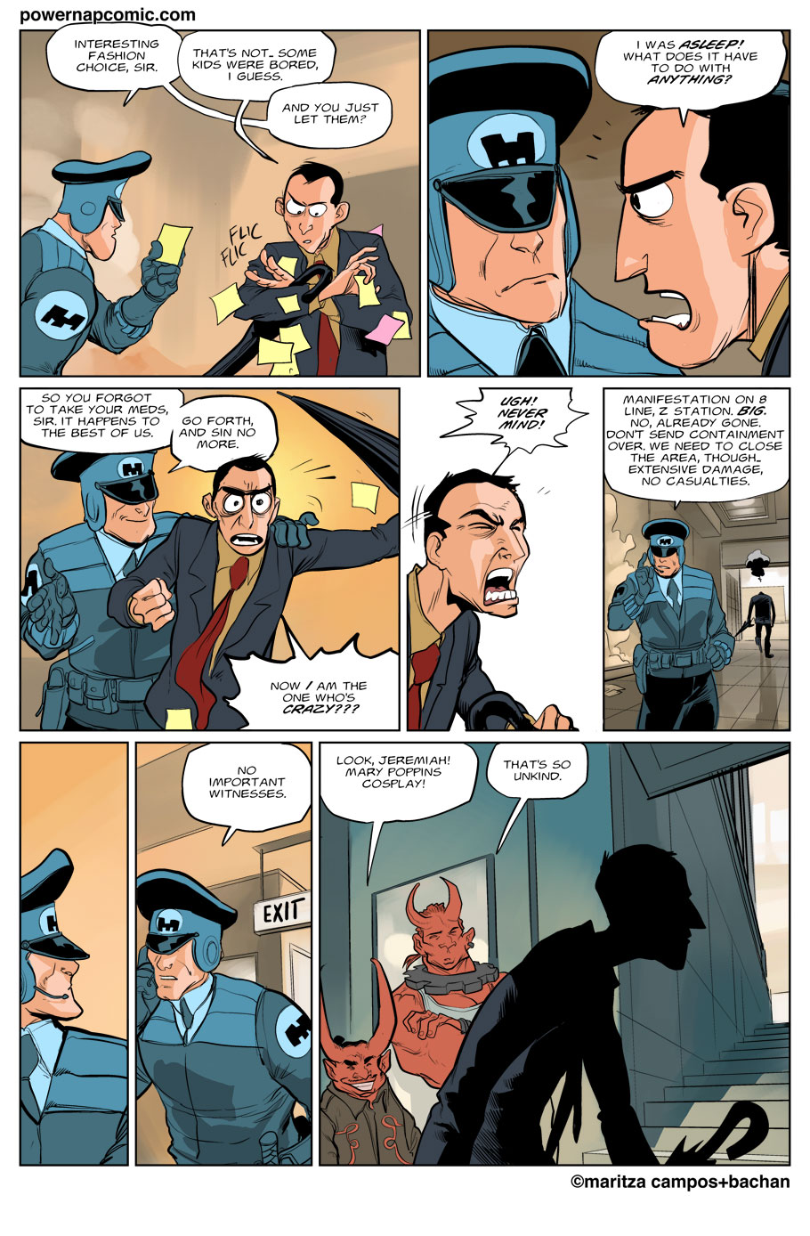 (maritza says) Welcome! This is Power Nap, our online graphic novel. It's a science fiction story heavily oriented towards action and humor. Remember! You can follow the updates using the rss, or follow me on Twitter. I always announce updates and news on twitter, and my username is @maritzac if you want to see the announcements as the comic updates. In addition, you're welcome to join the Power Nap fan page in Facebook |