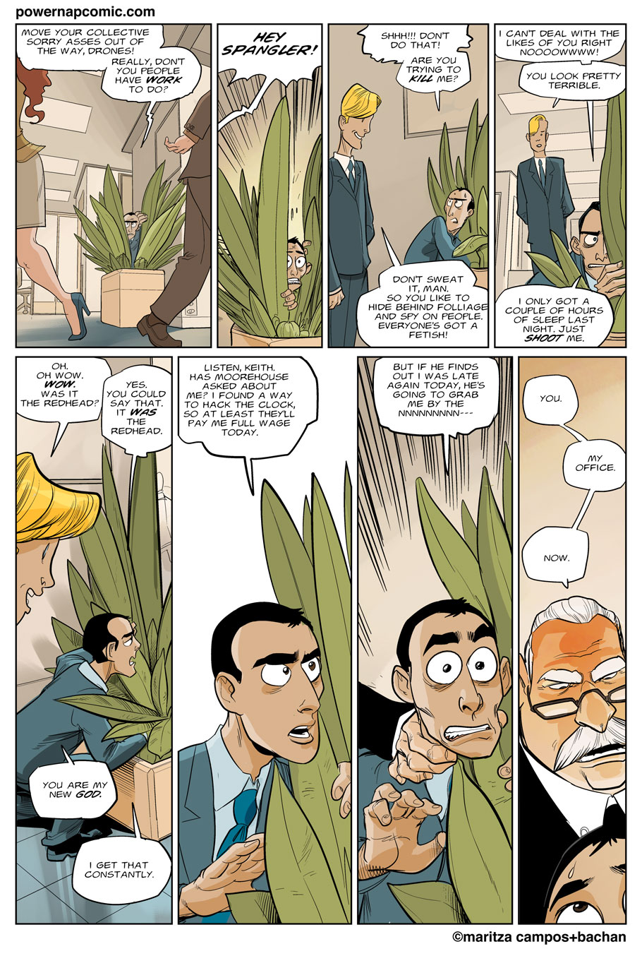 (maritza says) Welcome! This is Power Nap, our online graphic novel. It's a science fiction story heavily oriented towards action and humor. Remember! You can follow the updates using the rss, or follow me on Twitter. I always announce updates and news on twitter, and my username is @maritzac if you want to see the announcements as the comic updates. In addition, you're welcome to join the Power Nap fan page in Facebook |