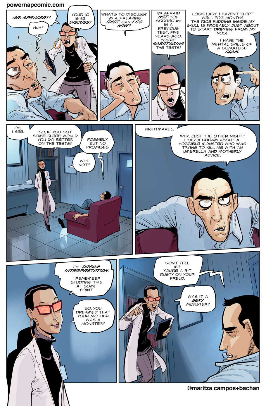 (maritza says) Welcome! This is Power Nap, our online graphic novel. It's a science fiction story heavily oriented towards action and humor. Remember! You can follow the updates using the rss, or follow me on Twitter. I always announce updates and news on twitter, and my username is @maritzac if you want to see the announcements as the comic updates. In addition, you're welcome to join the Power Nap fan page in Facebook |