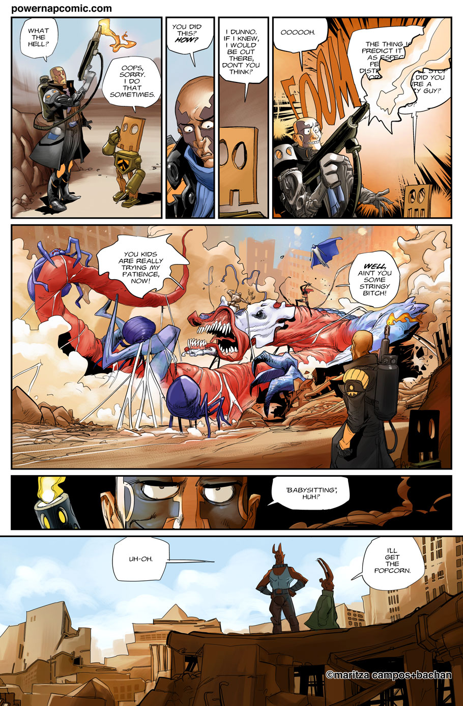(maritza says) Welcome! This is Power Nap, our online graphic novel. It's a science fiction story heavily oriented towards action and humor. Remember! You can follow the updates using the rss, or follow me on Twitter. I always announce updates and news on twitter, and my username is @maritzac if you want to see the announcements as the comic updates. In addition, you're welcome to join the Power Nap fan page in Facebook |