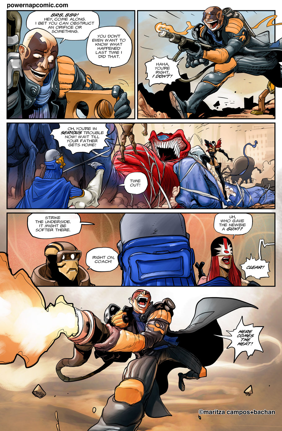 (maritza says) Welcome! This is Power Nap, our online graphic novel. It's a science fiction story heavily oriented towards action and humor. Remember! You can follow the updates using the rss, or follow me on Twitter. I always announce updates and news on twitter, and my username is @maritzac if you want to see the announcements as the comic updates. In addition, you're welcome to join the Power Nap fan page in Facebook |