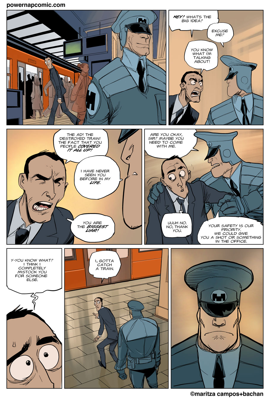 (maritza says) Welcome! This is Power Nap, our online graphic novel. It's a science fiction story heavily oriented towards action and humor. Remember! You can follow the updates using the rss, or follow me on Twitter. I always announce updates and news on twitter, and my username is @maritzac if you want to see the announcements as the comic updates. In addition, you're welcome to join the Power Nap fan page in Facebook |