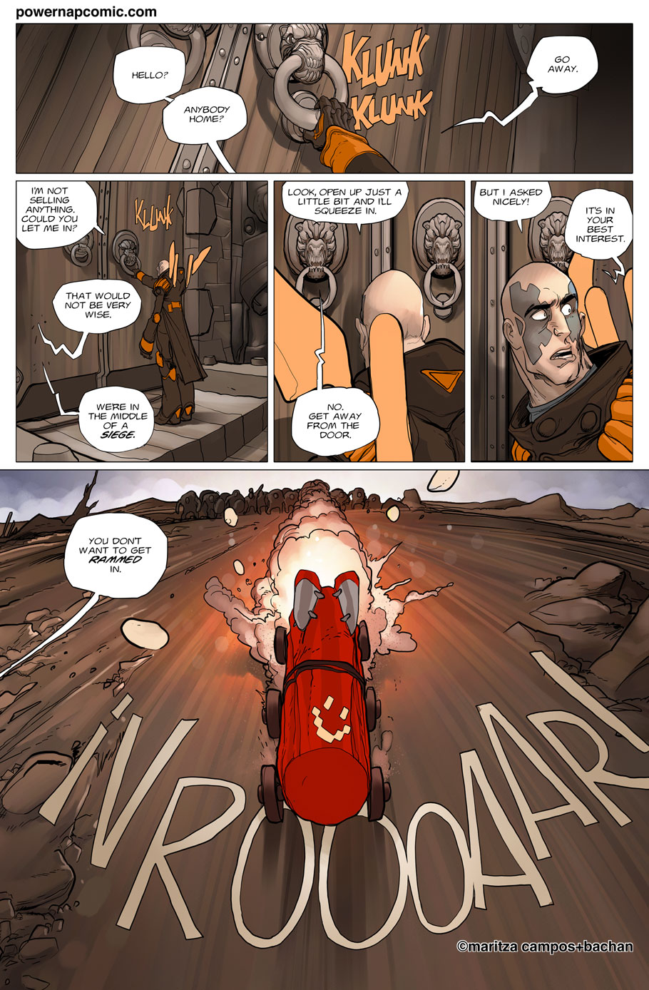 (maritza says) Welcome! This is Power Nap, our online graphic novel. It's a science fiction story heavily oriented towards action and humor. Remember! You can follow the updates using the rss, or follow me on Twitter. I always announce updates and news on twitter, and my username is @maritzac if you want to see the announcements as the comic updates. In addition, you're welcome to join the Power Nap fan page in Facebook |