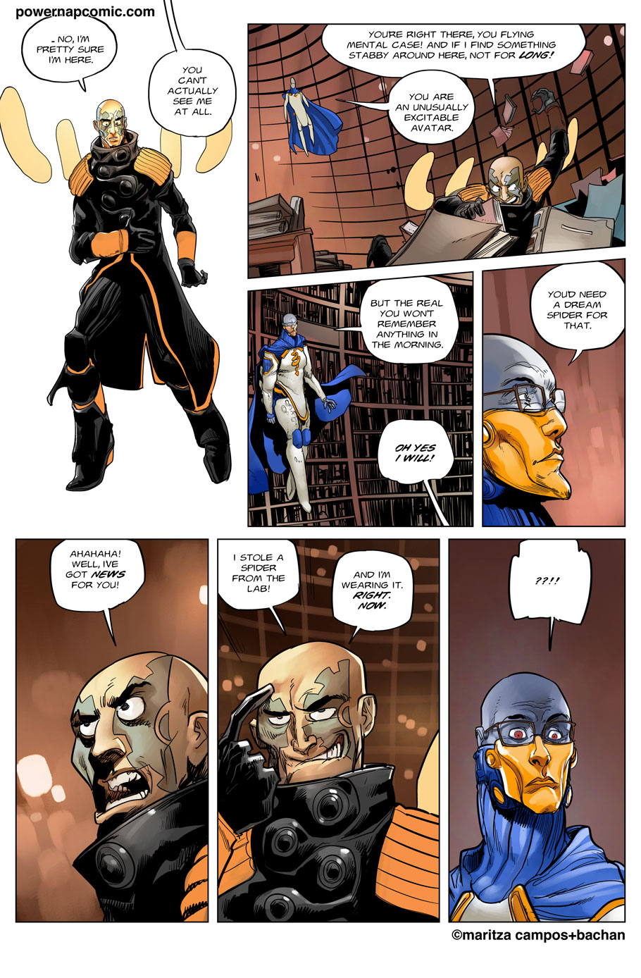 (maritza says) Welcome! This is Power Nap, our online graphic novel. It's a science fiction story heavily oriented towards action and humor. Remember! You can follow the updates using the rss, or follow me on Twitter. I always announce updates and news on twitter, and my username is @maritzac if you want to see the announcements as the comic updates. In addition, you're welcome to join the Power Nap fan page in Facebook |