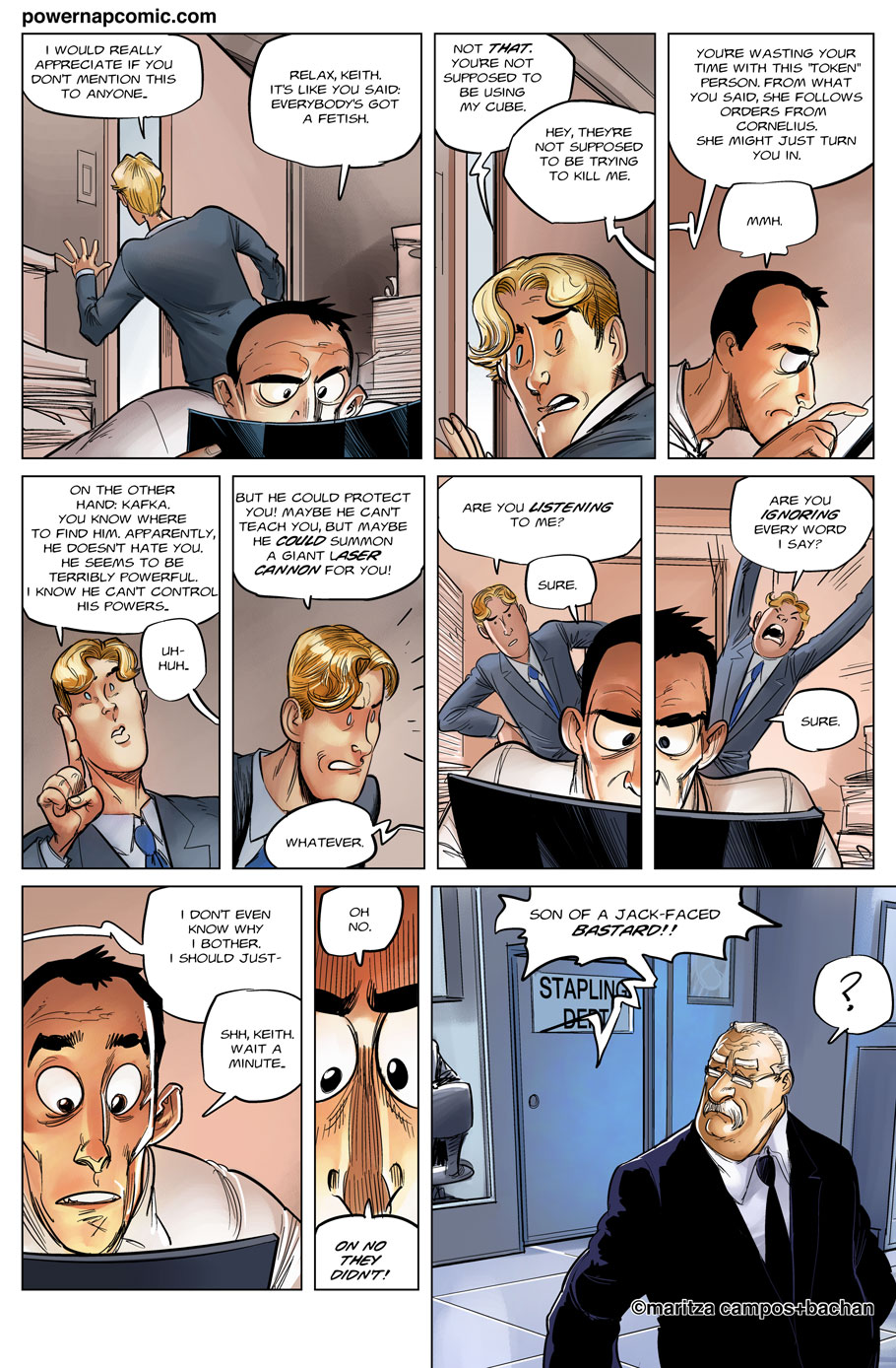 (maritza says) Welcome! This is Power Nap, our online graphic novel. It's a science fiction story heavily oriented towards action and humor. Remember! You can follow the updates using the rss, or follow me on Twitter. I always announce updates and news on twitter, and my username is @maritzac if you want to see the announcements as the comic updates. In addition, you're welcome to join the Power Nap fan page in Facebook |