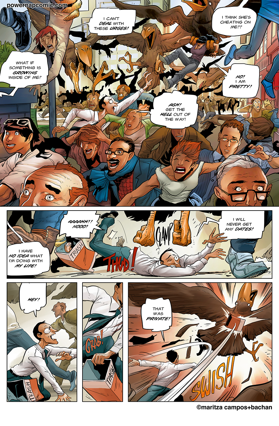 (maritza says) Welcome! This is Power Nap, our online graphic novel. It's a science fiction story heavily oriented towards action and humor. Remember! You can follow the updates using the rss, or follow me on Twitter. I always announce updates and news on twitter, and my username is @maritzac if you want to see the announcements as the comic updates. In addition, you're welcome to join the Power Nap fan page in Facebook |