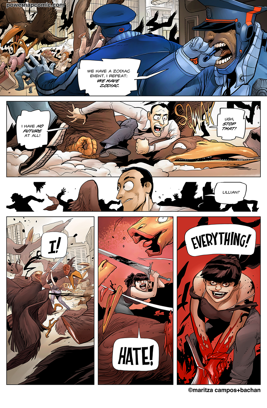 (maritza says) Welcome! This is Power Nap, our online graphic novel. It's a science fiction story heavily oriented towards action and humor. Remember! You can follow the updates using the rss, or follow me on Twitter. I always announce updates and news on twitter, and my username is @maritzac if you want to see the announcements as the comic updates. In addition, you're welcome to join the Power Nap fan page in Facebook |