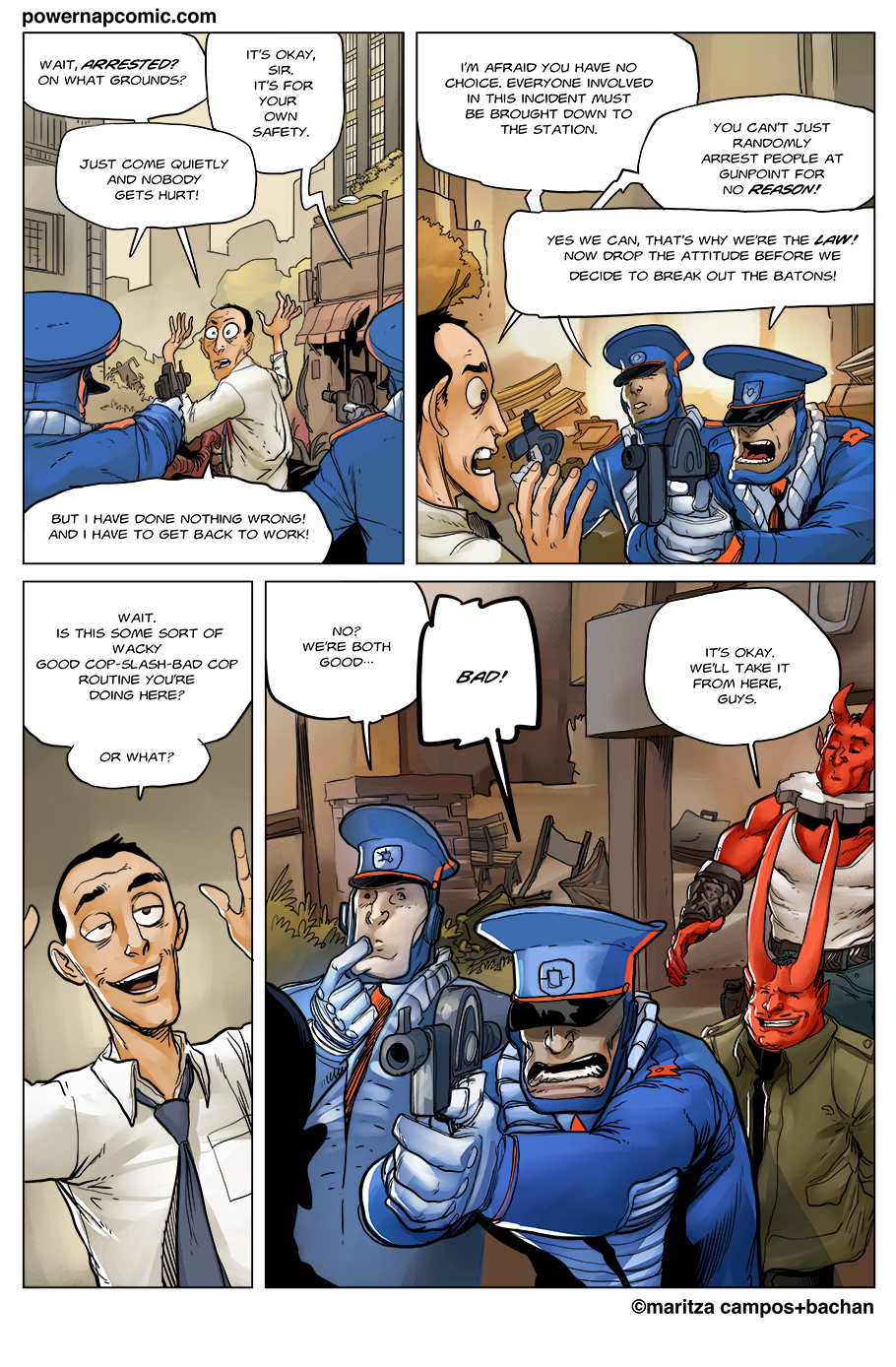 (maritza says) Welcome! This is Power Nap, our online graphic novel. It's a science fiction story heavily oriented towards action and humor. Remember! You can follow the updates using the rss, or follow me on Twitter. I always announce updates and news on twitter, and my username is @maritzac if you want to see the announcements as the comic updates. In addition, you're welcome to join the Power Nap fan page in Facebook |