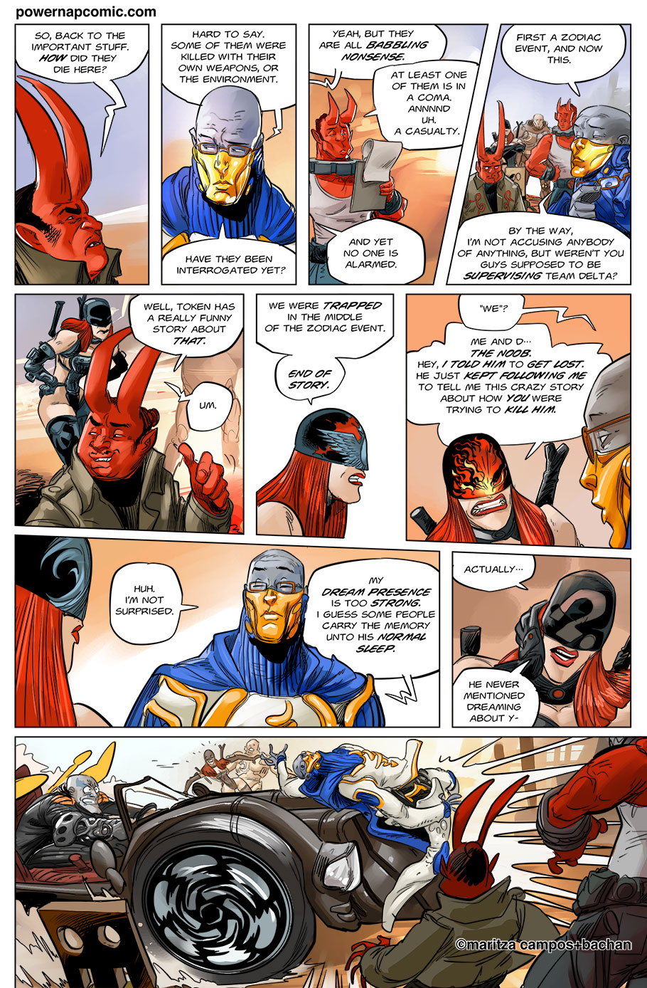 (maritza says) Welcome! This is Power Nap, our online graphic novel. It's a science fiction story heavily oriented towards action and humor. Remember! You can follow the updates using the rss, or follow me on Twitter. I always announce updates and news on twitter, and my username is @maritzac if you want to see the announcements as the comic updates. In addition, you're welcome to join the Power Nap fan page in Facebook |
