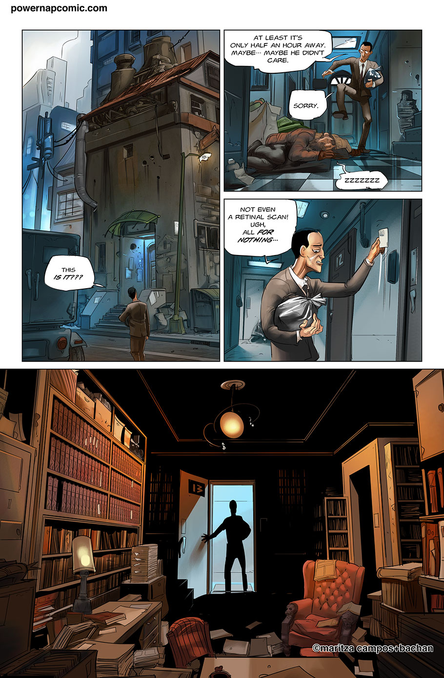 (maritza says) Welcome! This is Power Nap, our online graphic novel. It's a science fiction story heavily oriented towards action and humor. Remember! You can follow the updates using the rss, or follow me on Twitter. I always announce updates and news on twitter, and my username is @maritzac if you want to see the announcements as the comic updates. In addition, you're welcome to join the Power Nap fan page in Facebook |