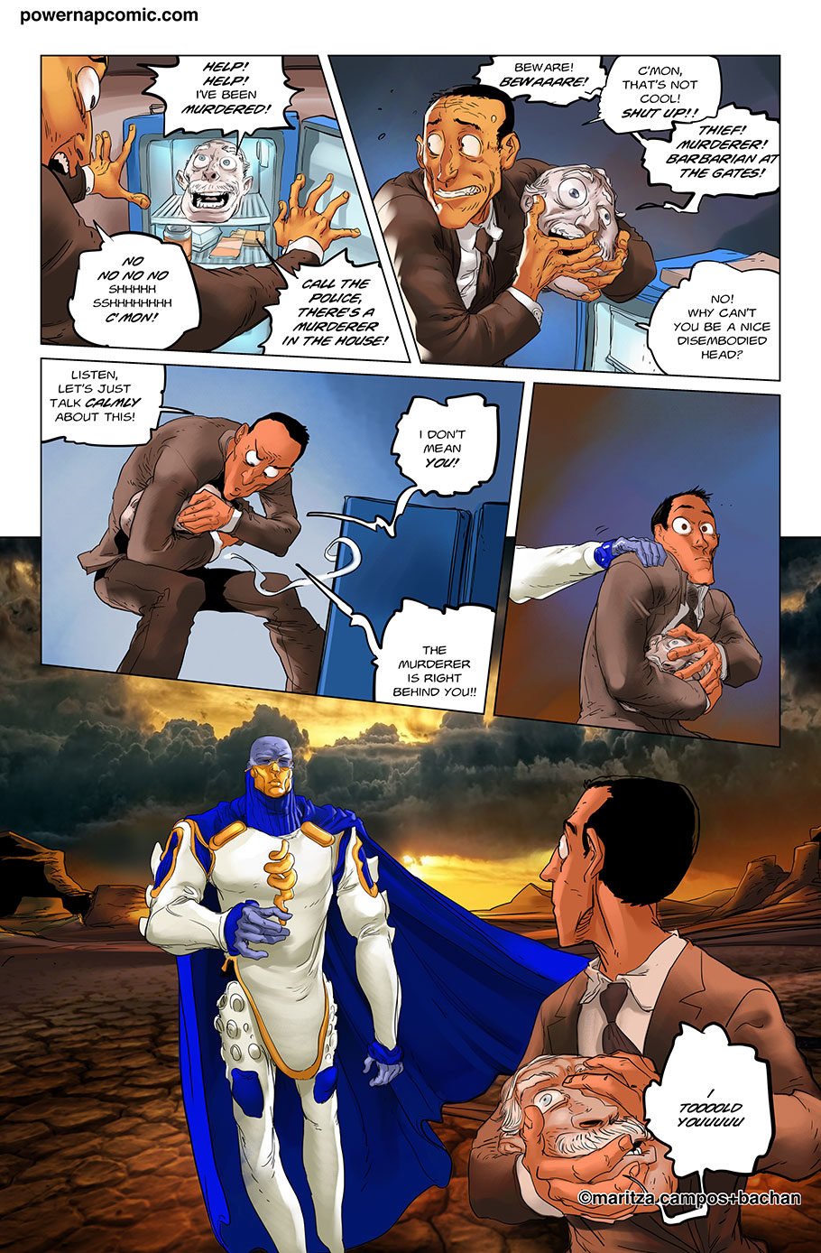 (maritza says) Welcome! This is Power Nap, our online graphic novel. It's a science fiction story heavily oriented towards action and humor. Remember! You can follow the updates using the rss, or follow me on Twitter. I always announce updates and news on twitter, and my username is @maritzac if you want to see the announcements as the comic updates. In addition, you're welcome to join the Power Nap fan page in Facebook |