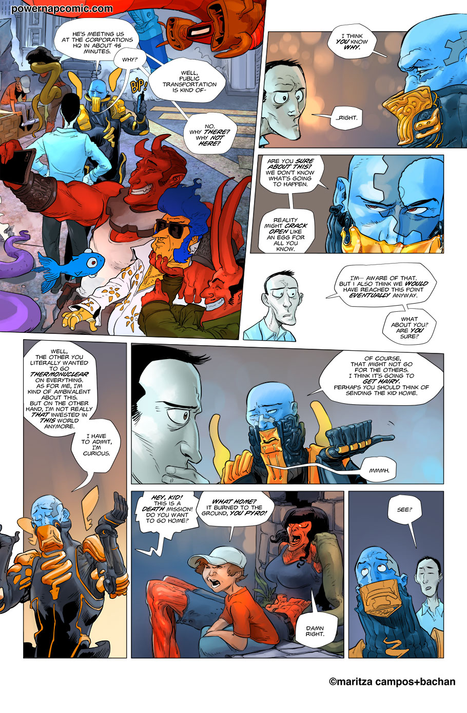 (maritza says) Welcome! This is Power Nap, our online graphic novel. It's a science fiction story heavily oriented towards action and humor. Remember! You can follow the updates using the rss, or follow me on Twitter. I always announce updates and news on twitter, and my username is @maritzac if you want to see the announcements as the comic updates. In addition, you're welcome to join the Power Nap fan page in Facebook |