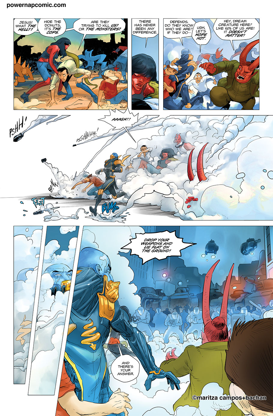 (maritza says) Welcome! This is Power Nap, our online graphic novel. It's a science fiction story heavily oriented towards action and humor. Remember! You can follow the updates using the rss, or follow me on Twitter. I always announce updates and news on twitter, and my username is @maritzac if you want to see the announcements as the comic updates. In addition, you're welcome to join the Power Nap fan page in Facebook |
