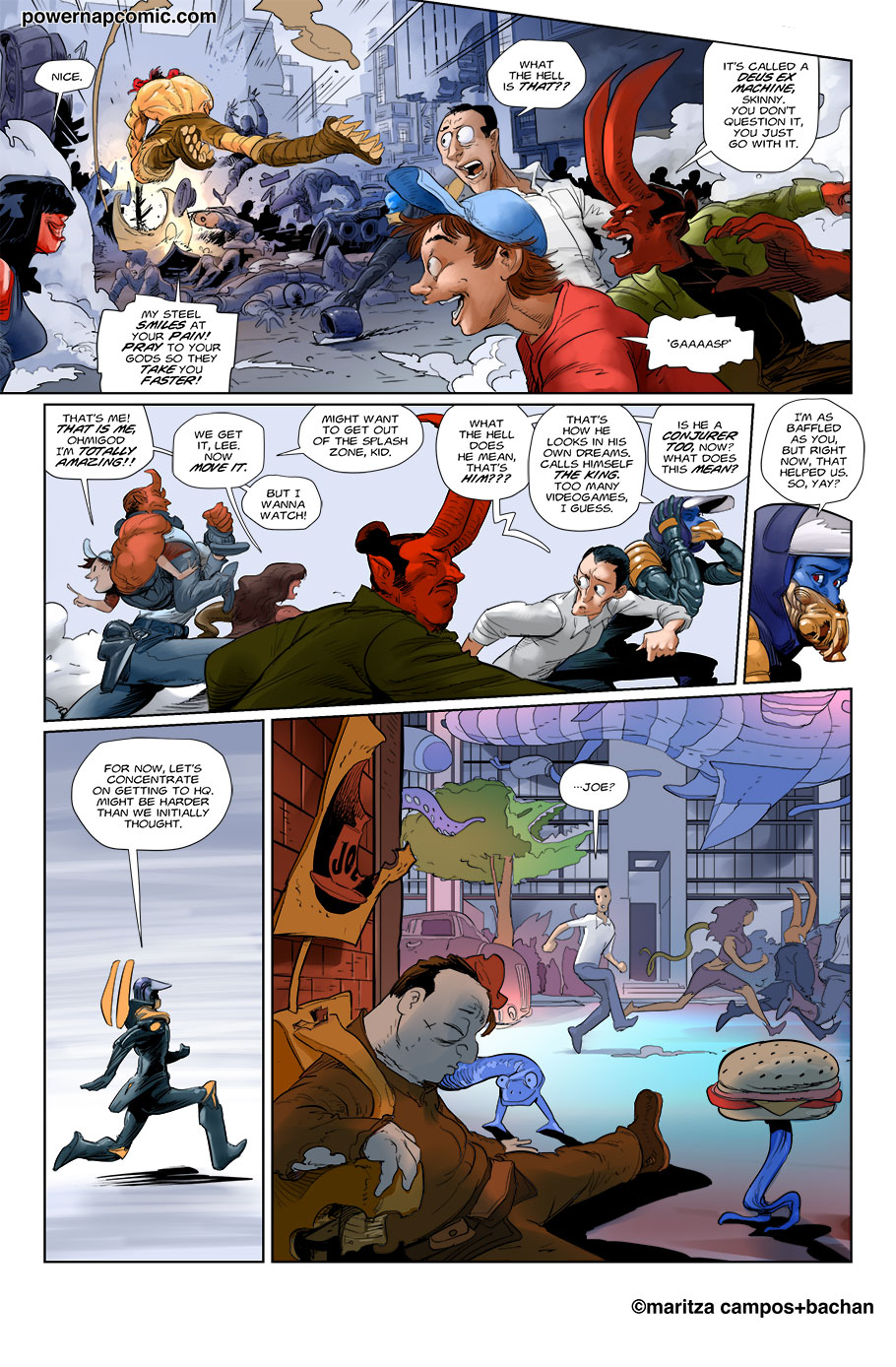 (maritza says) Welcome! This is Power Nap, our online graphic novel. It's a science fiction story heavily oriented towards action and humor. Remember! You can follow the updates using the rss, or follow me on Twitter. I always announce updates and news on twitter, and my username is @maritzac if you want to see the announcements as the comic updates. In addition, you're welcome to join the Power Nap fan page in Facebook |