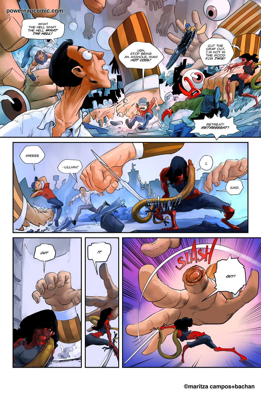 (maritza says) Welcome! This is Power Nap, our online graphic novel. It's a science fiction story heavily oriented towards action and humor. Remember! You can follow the updates using the rss, or follow me on Twitter. I always announce updates and news on twitter, and my username is @maritzac if you want to see the announcements as the comic updates. In addition, you're welcome to join the Power Nap fan page in Facebook |