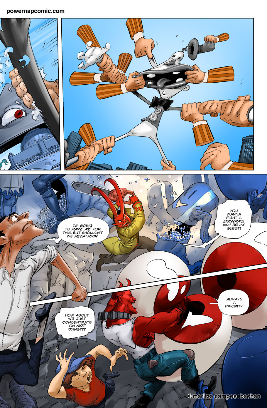 (maritza says) Welcome! This is Power Nap, our online graphic novel. It's a science fiction story heavily oriented towards action and humor. Remember! You can follow the updates using the rss, or follow me on Twitter. I always announce updates and news on twitter, and my username is @maritzac if you want to see the announcements as the comic updates. In addition, you're welcome to join the Power Nap fan page in Facebook |