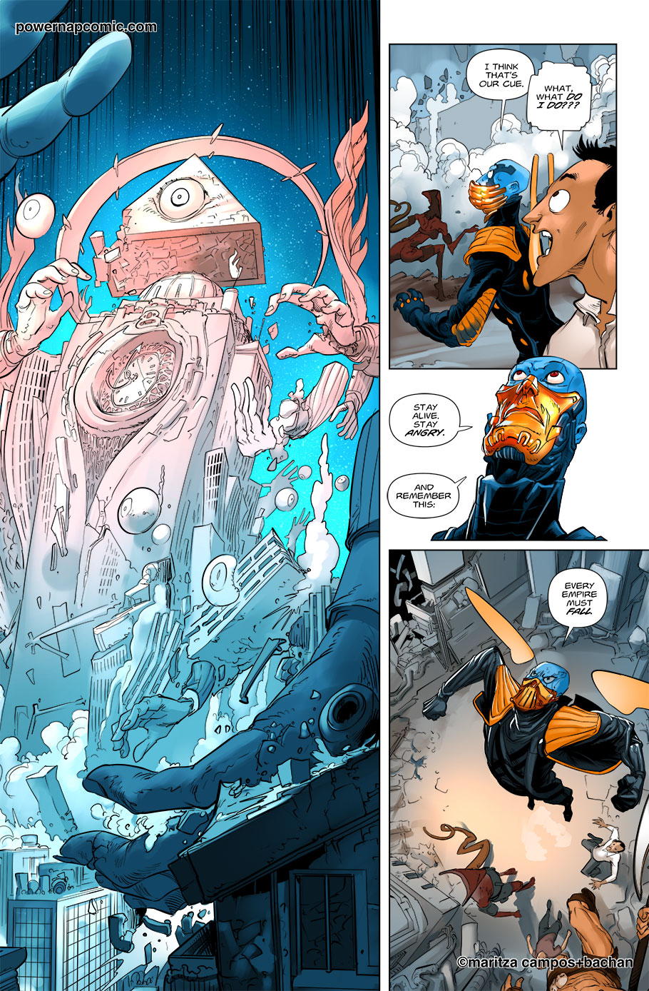 (maritza says) Welcome! This is Power Nap, our online graphic novel. It's a science fiction story heavily oriented towards action and humor. Remember! You can follow the updates using the rss, or follow me on Twitter. I always announce updates and news on twitter, and my username is @maritzac if you want to see the announcements as the comic updates. In addition, you're welcome to join the Power Nap fan page in Facebook |