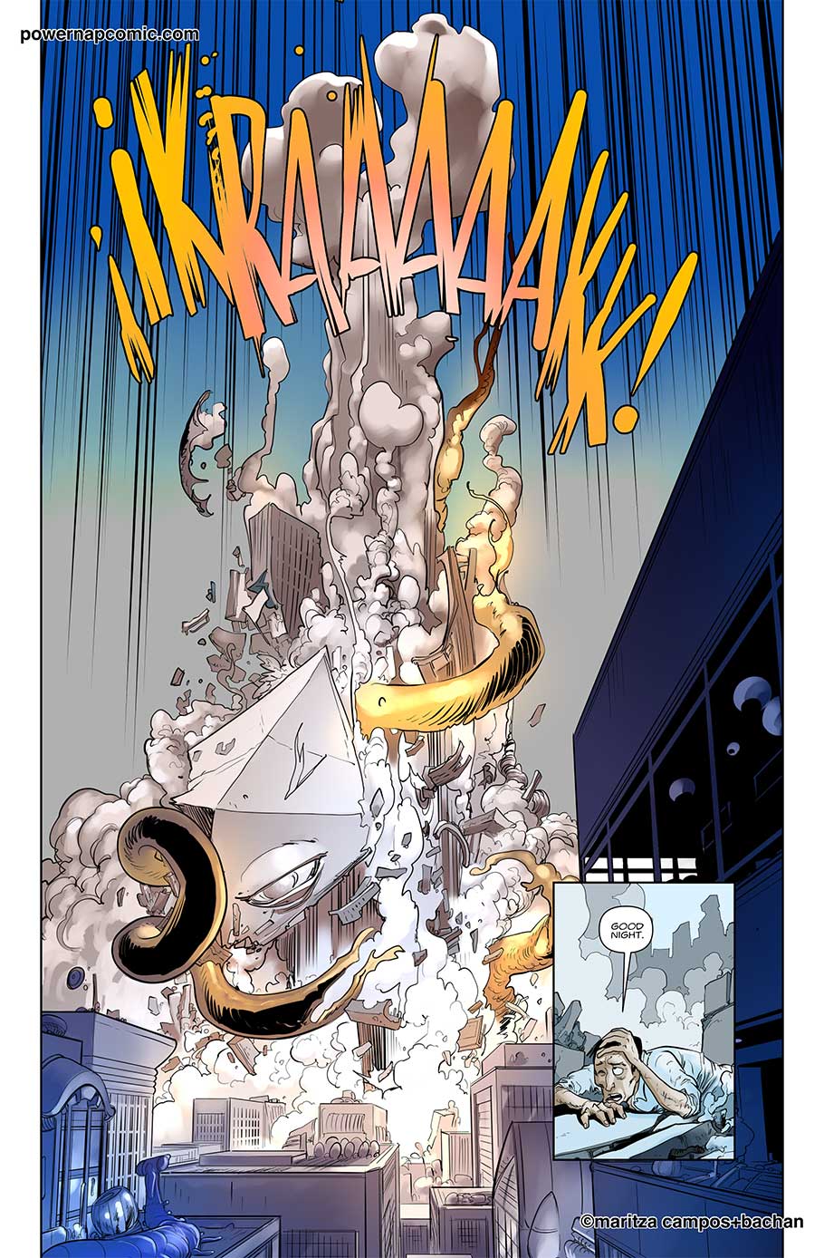 (maritza says) Welcome! This is Power Nap, our online graphic novel. It's a science fiction story heavily oriented towards action and humor. Remember! You can follow the updates using the rss, or follow me on Twitter. I always announce updates and news on twitter, and my username is @maritzac if you want to see the announcements as the comic updates. In addition, you're welcome to join the Power Nap fan page in Facebook |